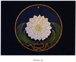 The pictorial journey of a women client of Carl Jung’s; from her first to a later image. Of the first image he says, “The picture shows first of all her imprisoned state, but not yet the act of liberation… Our series of pictures illustrates the intial stages of the way of individuation [wholeness]". Mandala Symbolism, C. G. Jung, 1959 pgs. 8-64.